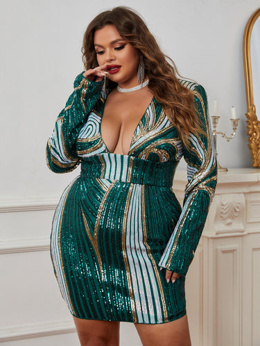 Plus Plunging Neck Sequins Bodycon Dress